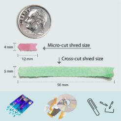 - Shreds CDs/ DVDs, Credit cards; Small paper clips ; Staples