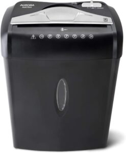The Aurora AU875XA 8-sheet crosscut paper/ credit card shredder with 3 7-gallon wastebasket is the perfect home office device to keep you safe from identity theft The AU875XA accepts up to 8 sheets of paper at a time and shreds them into small pieces (3/16 by 1-27/32 inches) security level P-3 In addition to paper the AU875XA shreds credit cards keeping vital information from falling into the wrong hands The throat of the shredder is 8 7 inches wide and allows continuous shredding for 3 minutes The item includes an integrated handle for easy emptying of the 3 7-gallon wastebasket