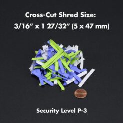 - Shreds paper credit cards into small pieces (3/16 by 1-27/32 inches) security level P-3