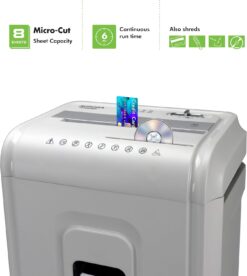 - High-Security Micro-Cut with 8 sheet capacity; destroys credit cards and CDs/DVDs