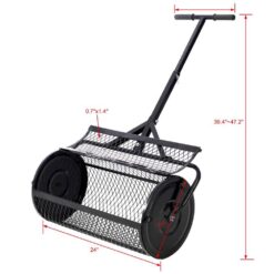 - Save money and time from laborious traditional operations: the large 24 in. rotating drum compost sifter distributes peat moss and soil evenly throughout your yard, dramatically reducing waste and saving a lot of money on peat moss or other materials 1 simple step with the spreader is equivalent to 10 tedious steps with a traditional shovel, saving both work time and property damage
