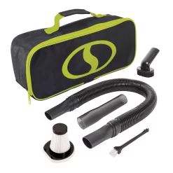 - ACCESSORY KIT: 6-pc auto accessory kit includes: Extension Hose, Crevice Nozzle, Brush Attachment, Carrying Bag, Replacement Filter, Filter Cleaning Brush