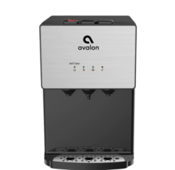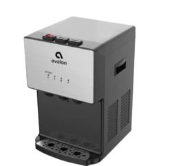 The Avalon 3 Temperature Self Cleaning Bottleless Countertop Water Cooler with Child Safety Lock offers a choice of 3 water temperatures. The machines highly efficient compressor makes the cold water crisp and ice cold at approximately 47° F without the need of adding ice cubes to your drink. The hot faucet is approximately 185° F. Due to the extremely hot water, we’ve added a child safety lock on the hot water faucet. The tanks hold 1 liter of hot water and 3.6 liters of cold water. There is a built-in nightlight making the water spouts clearly visible in the dark. The dispensing area is 12x3x10 inches with 9 inches of space below the spouts. This will accommodate most large cups or bottles. This water cooler is bottle-less with an NSF certified activated carbon filter and a sediment filter with a water line that can be attached to your water source. The filters will purify the tap water eliminating any chlorine, lead, rust, and bacteria. There is also a built-in leak detector. We have incorporated a self-clean ozone function which will automatically clean the machine’s water tank with the injection of ozone by the press of a switch. The water cooler is UL listed and complies with all standards of Energy Star. All parts necessary for installation are included. The adapter to connect our water cooler tubing to an existing line is 3/8″ which will fit most standard water supply lines. The unit dimensions are 13x12x19 inches.