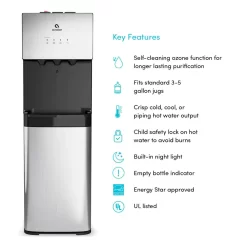 - Child safe: this product is UL/Energy Star approved and features a child safety lock on the hot water spout so the entire family can use it worry free. Water Dispenser