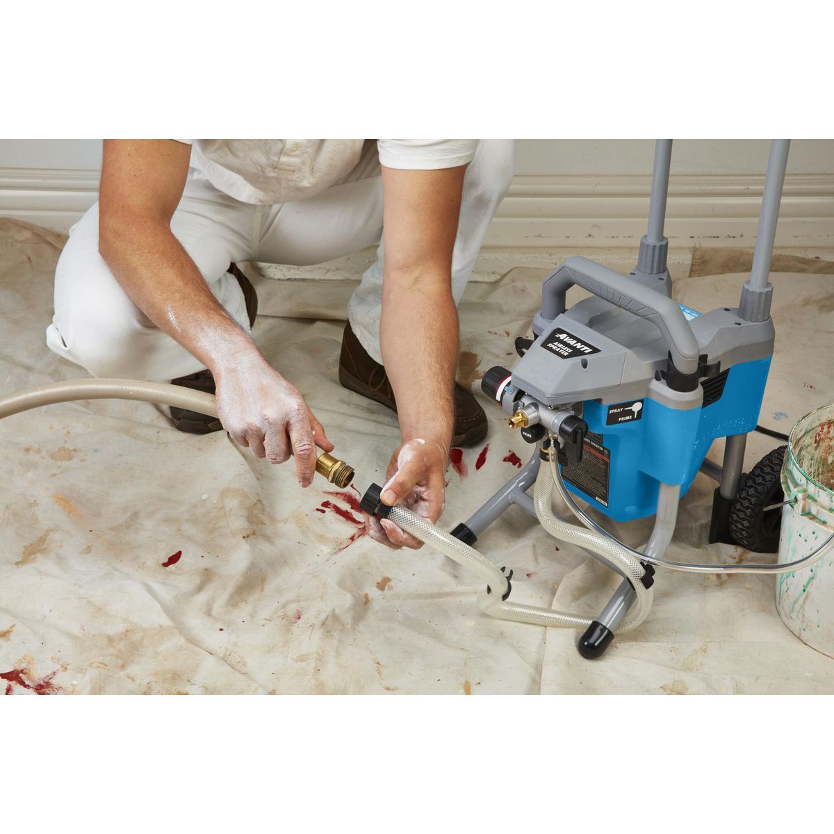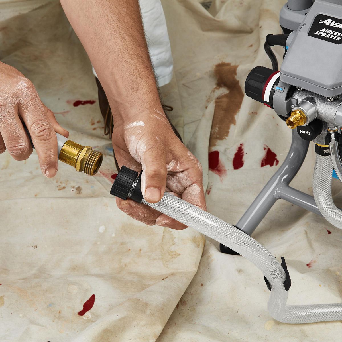 The AVANTI® Airless Paint, Primer & Stain Sprayer is just the thing for general purpose homeowner and handyman projects. The sprayer can go from storage to painting in a matter of minutes. The powerful 3/4 HP pump delivers from 1000 – 3000 PSI to atomize and spray unthinned paints, primers and stains. The flexible suction tube makes it easy to paint directly from 1 or 5 gallon paint containers. All-direction wheels make the sprayer easy to transport and maneuver. The sprayer is rated for up to 140 gallons of paint per year.