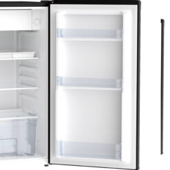Available in Black, this retro-designed compact fridge offers a cool, colorful, and sophisticated look for any setting. The 3.1 cu. ft. refrigerator is an ideal fit for your home, dorm, or office, saving space while keeping your favorite foods and beverages within reach. Manual defrost with drip tray keeps your food items fresh and cold while ENERGY STAR Certification saves you energy and cost.  Built-in door shelves simplify food storage, accommodating 2-liter bottles and assorted condiments. Two adjustable, removable glass shelves allow for easy cleaning and viewing of your food items at-a-glance, and mechanical temperature control allows for easy selection of the unit’s correct settings with the turn of a dial. This chicly designed compact fridge complements any setting. Model includes Avanti 1-year manufacturer limited warranty.