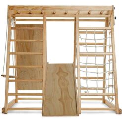 | Frame Material | Wood | Included | Climbing Wall, Monkey Bars, Swing |