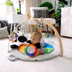 - The Baby Einstein Zen’s Activity Milestones Plush Gym helps baby reach important milestones from 0-12 months through multisensory exploration and included play guide.