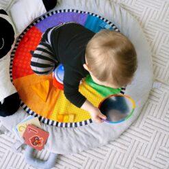 - 10+ toys & activities support motor skill development and sensory discovery through play with bead chasers, a baby-safe mirror, tummy time pillow, and more.