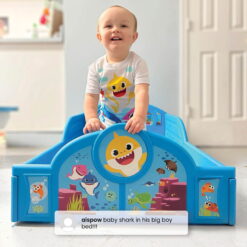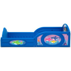 Doo-doo-doo-doo-doo your little one a favor and get them this Baby Shark Plastic Sleep and Play Toddler Bed with Attached Guardrails by Delta Children. Featuring colorful decals of Baby Shark and his family, this kids’ toddler bed will make a splash by inspiring a wave of sweet dreams. The bed’s low mattress height and built-in guardrails make it the best option for your child’s first big-kid bed, giving them the independence they crave while keeping them safe throughout the night. And that’s not all, the bed’s versatile blue plastic frame can also be used as a play enclosure or a ton of other fun things, like a ball pit (play balls not included). This fun toddler bed will look great with any décor. Get this toddler bed today and bring home the magic of Baby Shark!