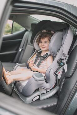 The Cover Me has an integrated patented height and angle adjustable UPF 50+ canopy for full in-car shade protection. The canopy is integrated and attached on a built-in track so it’s easy to adjust and remove. Flip-out side visors provide extra shade protection for kids when the car is in motion and the sunlight’s coming from multiple directions. Built with premium and deluxe fabric and materials, the Comfort Cabin Seat offers extra padding to keep your child comfortable on a long ride. Two deep cup holders also allow children to place their sippy cups and snacks within reach. The integrated headrest with no rethread harness offers ultra-convenience for parents when adjusting the headrest position. With the zero radius recline, plus flip foot for dual recline adjustment, parents can easily adjust the seat and recline in the car.