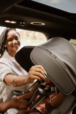 The Cover Me has an integrated patented height and angle adjustable UPF 50+ canopy for full in-car shade protection. The canopy is integrated and attached on a built-in track so it’s easy to adjust and remove. Flip-out side visors provide extra shade protection for kids when the car is in motion and the sunlight’s coming from multiple directions. Built with premium and deluxe fabric and materials, the Comfort Cabin Seat offers extra padding to keep your child comfortable on a long ride. Two deep cup holders also allow children to place their sippy cups and snacks within reach. The integrated headrest with no rethread harness offers ultra-convenience for parents when adjusting the headrest position. With the zero radius recline, plus flip foot for dual recline adjustment, parents can easily adjust the seat and recline in the car.