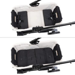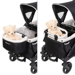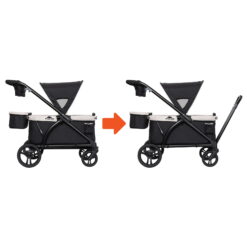 - Stroller wagon with a hideaway pull handle that easily allows the stroller wagon to transform from “push” stroller to “pull” wagon mode