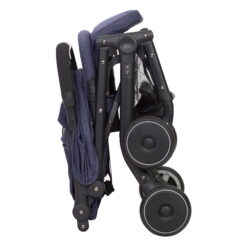 Get around in comfortable style with the Parker Baby Trend Jetaway Plus Compact Stroller. It features a sleek design for those that are on the go. The telescoping handle on this foldable stroller helps you to roll it to your next destination for easy transport. The five-point safety harness, multi-position reclining seat and adjustable leg support helps keeps your little one secure and comfortable. Designed to accommodate children up to 45 lbs, the stroller with canopy has a rear roll-up airflow panel and a peek-a-boo window. The easy-grip handle has a removable cup holder and the large storage basket helps keep necessities nearby. In addition, it features dual front wheels to provide a smooth ride. This unit collapses and fits in the included tote bag for your convenience.