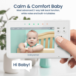 The Babysense V43 Video Baby Monitor comes equipped with a dedicated 4.3″ Color LCD Display with its unique Split Screen capability as well as two remote Pan, Tilt & Zoom Cameras with built-in adaptable intensity night lights. The monitor features the latest 2.4GHz FHSS Closed Loop Technology for an ultra-stable & hack-proof connection and high-quality digital vision & sound. Split-Screen 4.3″ LCD Display – see two babies side by side Two cameras with built-in adjustable night light intensity levels Remote Pan, Tilt & Zoom for your control and convenience Latest 2.4GHz Closed Loop Technology for Hack-Proof connection Two-way Talk audio baby monitor, Lullabies & White Noise Sound – Soothe & comfort your baby.