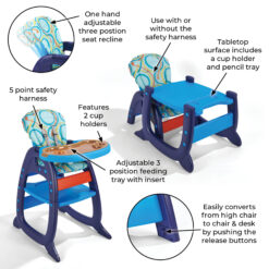 Badger Basket Envee II Baby High Chair with Play Table Conversion – Blue/Orange
