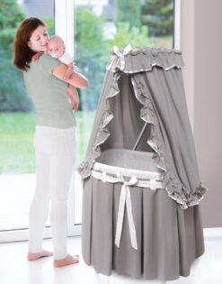 Badger Basket Majesty Baby Bassinet with Canopy – Gray and White Bedding