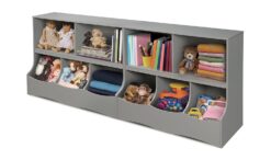 Badger Basket Multi-Bin Toy Storage Organizer and Book Shelf for Kids – Gray