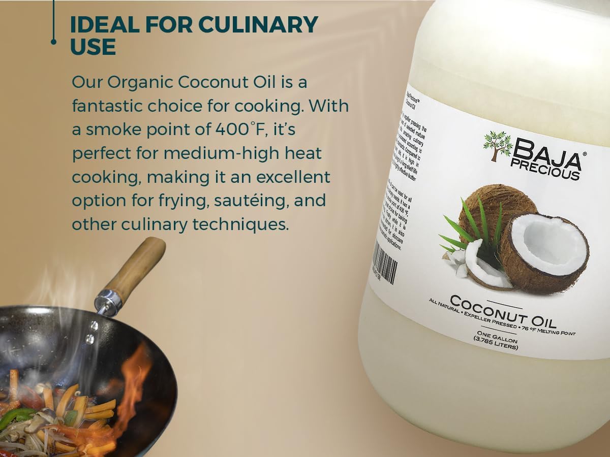 Extracted by expeller pressing the flesh of selected mature coconuts, this amazing culinary grade oil is processed according to strict quality standards. Compared to other culinary oils, it is high in saturated fat giving it a long shelf life and making it a highly effective butter substitute. This versatile oil can be used for all of your daily culinary needs. It has a medium-high smoke point of 400ºF, making it a great choice for baking and sauteing. Finally, while it is perfect for the kitchen, it is also highly recommended for skincare and countless cosmetic applications.