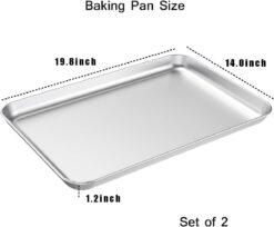 - PREMIUM MATERIAL: No more aluminum into your food, great replacement to aluminum pan. The baking sheets are made of 18/0 stainless steel without chemical coating or any other materials. Rust resistant and durable for many years