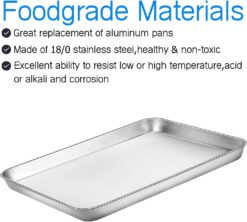 - Healthy Materials: The baking sheet is made of 18/0 Stainless Steel, without toxic chemical coating, which can provides quickly and evenly heating and cooling