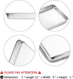 Baking Sheets 5 Pieces, Bastwe Cookie Sheets Set of 5 Stainless Steel Baking Pans Toaster Oven Tray Pans, Rectangle Size 12 × 9 × 1 inch, Rustproof & Healthy & Easy Clean & Dishwasher Safe