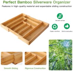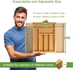 - Sturdy Construction and Easy Maintenance: This kitchen utensils drawer organizer is sturdy enough to store in place. And this bamboo organizer can be wipe quickly with warm water and be simply wiped down with a damp cloth.