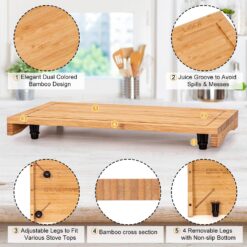 Bamboo Stovetop Cover&Countertop Cutting Board with Adjustable Legs, Dual-purpose Chopping Board for Electric Stove Burner, Workspace Block Cover for RV Camping Camper Gas Cook Top Cover