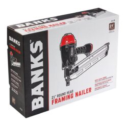 The BANKS® 21° Framing Nailer is designed to handle all types of framing and sheathing. This rugged nailer shoots full round head plastic collated nails from 2 in. to 3-1/2 in. long. The firing mechanism can be switched easily from sequential to contact trip and a dry-fire lockout prevents damage to the piston driver. Fast rear-load magazine.