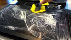 A glass stove top cleaner like this can be used to scrub down bathroom tiles, clean grout, the bathtub, even remove dried food stains on your ceramic stove top without scratching. Bar Keepes Friend to the rescueE Bar Keepers Friend (BKF) cooktop cleaner 13oz is a premium glass top stove cleaner & gas stove cleanser and polish that makes stovetops and household surfaces shine like new again. It’s a multipurpose cleanser for glass stove tops, chrome, stainless steel, porcelain, tile, ceramic and fiberglass surfaces. BKF is a great cleaner for glass stove tops.