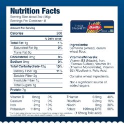 “Ingredients: Semolina (Wheat), Durum Wheat Flour. Vitamins/Minerals: Vitamin B3 (Niacin), Iron (Ferrous Sulfate), Vitamin B1 (Thiamine Mononitrate), Vitamin B2 (Riboflavin), Folic Acid. Contains: Wheat, Cereals with Gluten May Contain: This product is manufactured on equipment that processes products containing eggs Free From: Peanuts, Tree Nuts, Milk, Fish, Mollusks, Crustacean, Soy”