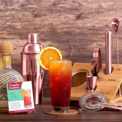 - BARTENDING KIT: Designed by bartenders, this 10-piece bar tool set has a stunning rose gold mirror finish and is presented in a Japanese bamboo stand. Equipped with all the bar accessories you need to create delicious cocktails from the comfort of your home.