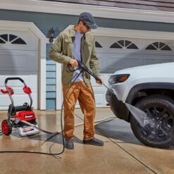 The 2000 PSI Max Performance Electric Pressure Washer from BAUER™ delivers ultimate cleaning performance with more power than standard electric pressure washers. Featuring 2000 PSI output, powerful enough to strip a wooden deck, remove road tar, tree sap and insect stains from cars, heavy mildew, oil and rust stains, combined with the convenience of quick-connect fittings and a built-in hose reel, this pressure washer is rugged and easy to use. Large 10 in., flat-free wheels make this pressure washer easy to transport, and the professional spray gun with metal wand provides long-lasting durability.