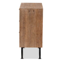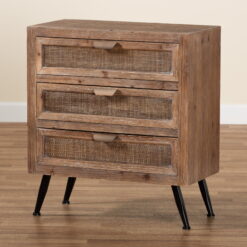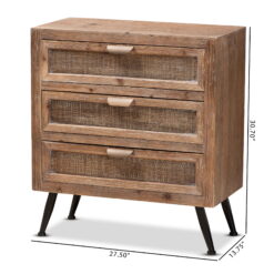 Baxton Studio Calida Mid-Century Modern Whitewashed Natural Brown Finished Wood and Rattan 3-Drawer Storage Cabinet