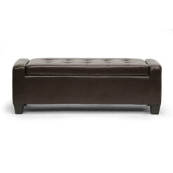 With your budget in mind, the Baxton Studio Manchester Ottoman is sure to be your pick for household storage with style. Uniting stately charisma with utilitarian attention, this ottoman provides ample storage space for your living essentials. Contemporarily tufted, this ottoman features black bonded leather upholstery with a genuine eucalyptus wood frame. The cushioned top provides additional seating or even a comfortable footrest. With soft corners and angular wedge feet, this ottoman is sure to please.
