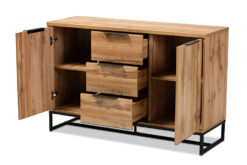 Store your dinnerware in style with the Baxton Studio Reid 3 Drawer Sideboard. This industrial-inspired sideboard is crafted from engineered wood, veneers, and metal with contrasting natural oak and black metal finishes. With 3 drawers, 2 cabinets, and 4 shelves, you have plenty of space for plates, glassware, silverware, and more.