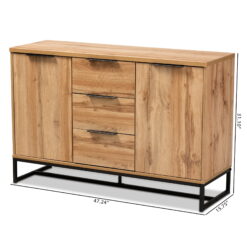 Baxton Studio Reid Modern and Contemporary Industrial Oak Finished Wood and Black Metal 3-Drawer Sideboard Buffet
