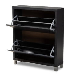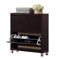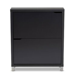 Keep all your shoes organized and within easy reach with the help of the Baxton Studio Simms Modern Shoe Cabinet. This modern shoe cabinet comes in your choice of finishes and has two doors that open to reveal two shelves of shoe storage space. Simply slide your shoes inside, close the door, and let the beauty of the piece complement the style of your bedroom, foyer, or drop zone. This cabinet is designed to accommodate up to 12 pairs of shoes.