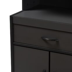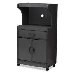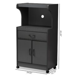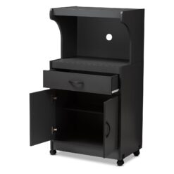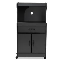 Clear up some counter-space with the Baxton Studio Tannis Rolling Microwave Kitchen Cabinet. This mobile cabinet is constructed from durable engineered wood and mounted on casters for easy transportation. The wide top and open shelf are ideal for small appliances. A vented backing panel makes for easy cord-management. For concealed storage, drawers and a shelved cabinet are built into the base. Choose among the available finish colors.