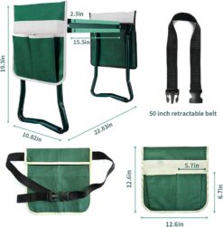 - Multifunctional Gardening Tool – The sturdy arms assist her in going to a standing position with ease.The kneeler can be flipped over to convert it into a comfortable seat that can help you sit and relax for a while when tired from gardening activities.It comes with a adjustable belt that can be connected to the pouches. You can hang the pouch on your garden kneeler, or attach it to the belt. Unique and functional design makes your garden work easier.