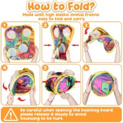 Easy to Assemble & Storage: Just open the package and take out the corn hole board, then glue the magic stickers on both sides. Come with a storage bag and instruction, which can easily carry the bean bag toss toy to the park, yard, beach and so on. Meeting every needs in the portable travel.
