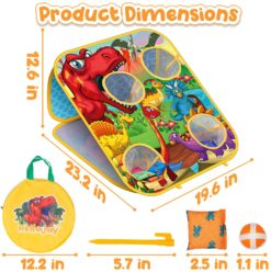 2in1 New Bean Bag Toss Game: Great designed indoor and outdoor game for toddler, this dinosaur theme corn hole game combine 2 gameplay with easier horizontal bean bag toss game and harder vertical dart game. The suitable hole can be thrown into the bean bags, the balls with sticky can be dart accurately. Meeting children to explore variety of gaming experience!