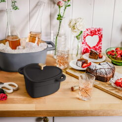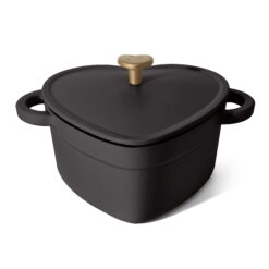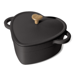Beautiful 2QT Cast Enamel Heart Dutch Oven, Black Sesame by Drew Barrymore.