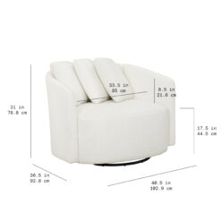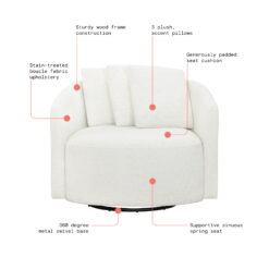 We love the Drew Chair by Beautiful for its wonderful blend of style and comfort. The streamlined design of this oversized boucle swivel accent chair is highlighted by soft, fabric upholstery with natural fibers for an elegant touch and soothing cream tones that compliment a variety of home decor styles and color palettes. The 3 plush accent pillows add customizable comfort. The metal swivel base spins 360 degrees so you can easily direct your attention anywhere in the room. Relax and talk with friends or curl up with a good book, the Drew Chair by Beautiful will be the perfect addition to your living room, reading nook or favorite space.