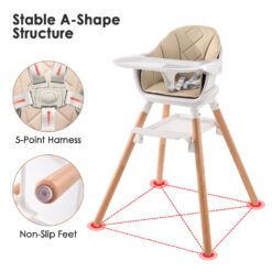Safety and Stability: Designed with A-shape structure and sturdy skin-friendly material, the solid wooden legs provides great stability. 5-point harness make your kids safely seat on the chair.