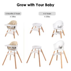 Multifuctional Design: All-new designed baby high chair includes 6 different modes, two modes for high chair, three modes for small chair and one mode for junior chair, suitable for kids from 6 months to 6 years old with height adjustable(maximum weight 55lbs).