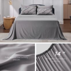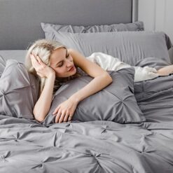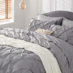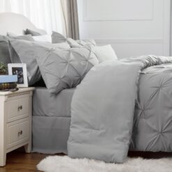Bedsure Queen Comforter Set – 7 Pieces Comforters Queen Size Grey, Pintuck Bedding Sets Queen for All Season, Bed in a Bag with Flat Sheet and Fitted Sheet, Pillowcases & Shams