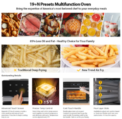 -Beelicious luxurious series digital oven combines an air fryer, convection oven and toaster in one. 32QT large capacity and unique compact design allow you to enjoy a tidy kitchen countertop and treat yourself to healthy and delicious meals!