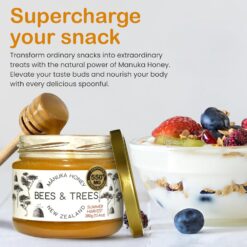 - SUSTAINABLY PACKAGED FOR GIFT-GIVING: Presented in an elegant 380g (13.4 oz) glass jar, Bees & Trees Manuka Honey makes an ideal gift for Christmas, New Year, and beyond. The glass packaging not only preserves the honey’s freshness but also offers a thoughtful, eco-conscious touch for your holiday gift baskets.