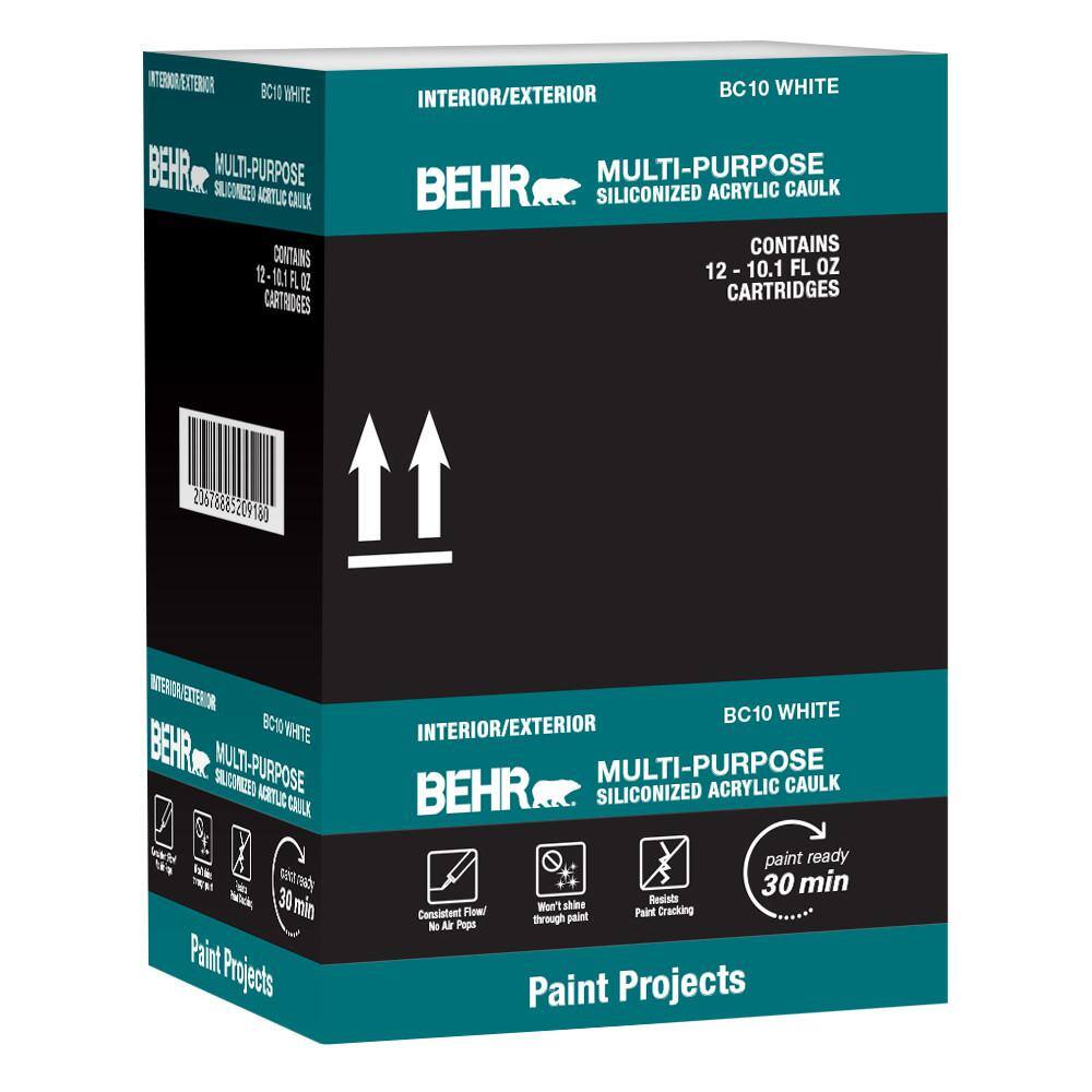 BEHR BC1011CS Multi-Purpose 10.1 fl. oz. White Siliconized Acrylic Latex Caulk (12-pack)